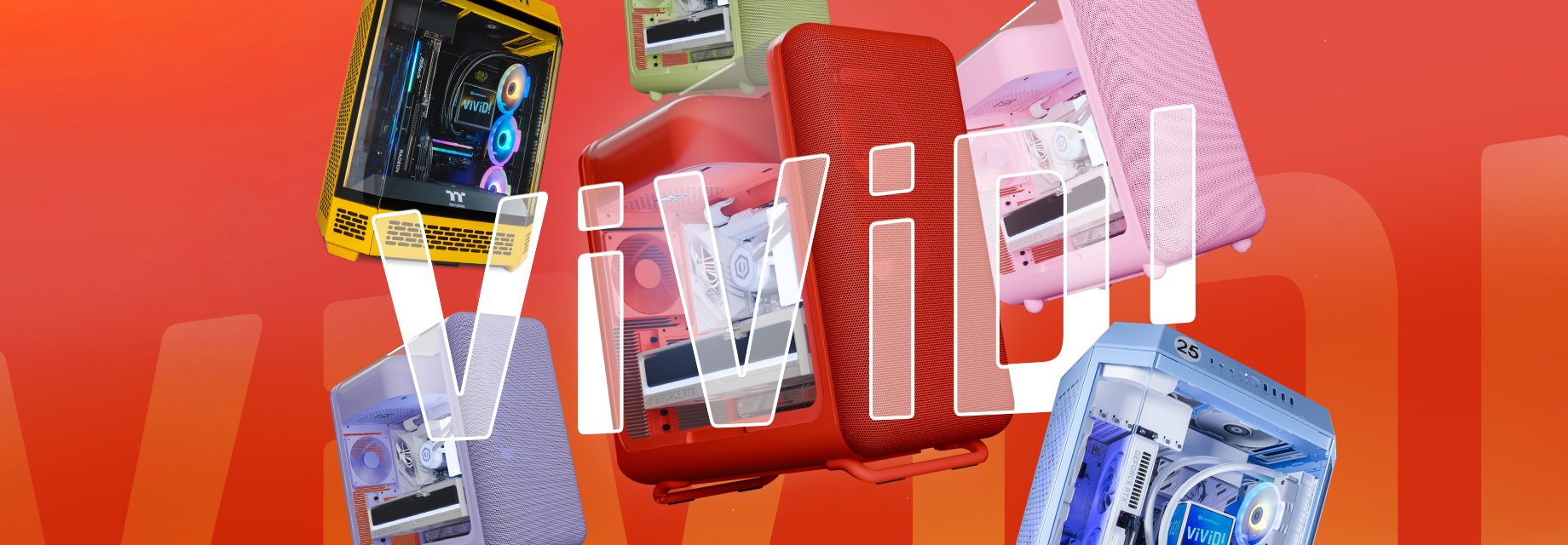 Introducing VIVID! A coloured case range featuring the Hyte X50 and X50 Air, and Thermaltake The Tower 600 and The View 390 Air, this case range bursts on to the scene in a full spectrum of colour. Built for those who play loud, think bold, and live unapologetically. Choose a case that suits you to get started or shop the full case range below.
